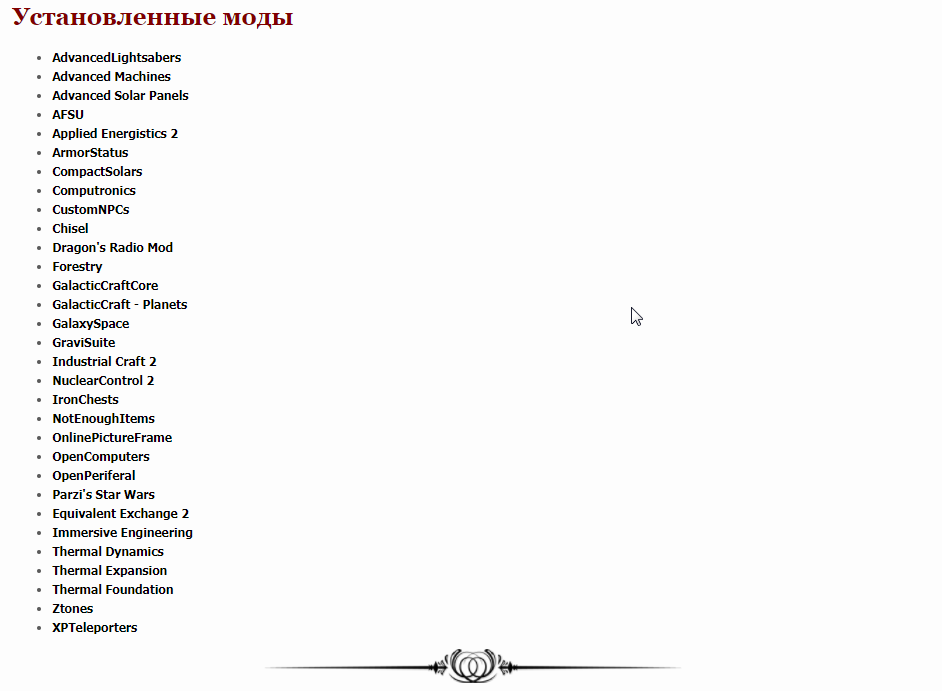 Из этого не будет: карпентера, чизеля, AE2 перегон жидкостей, солнечных панелей. Даже упоминать их не стоит.TechnoMagik 1.7.10Моды